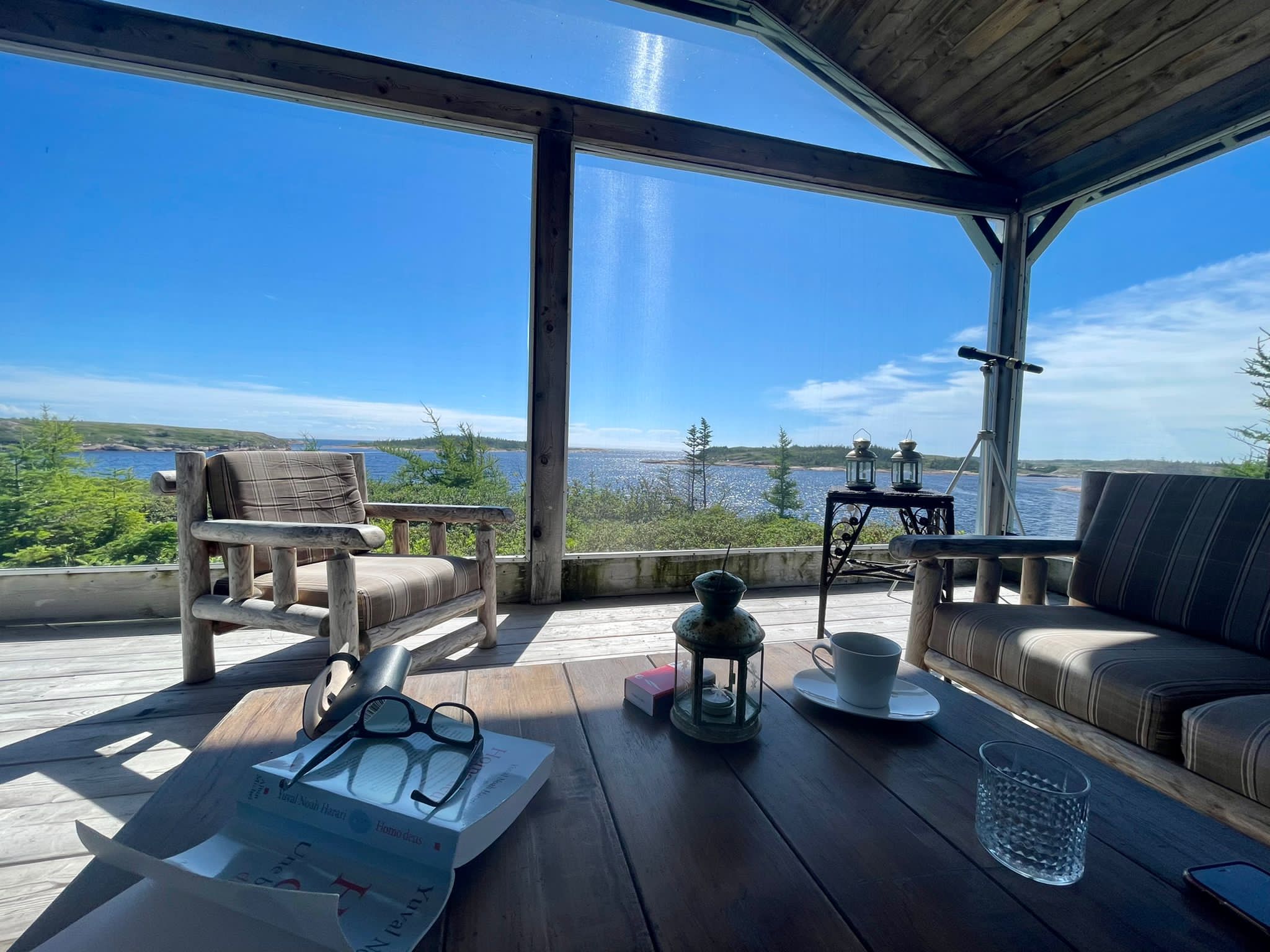 Surplombant la mer et à l'embouchure de la rivière, vous profiterez également de notre salon avec terrasse et vue sur les îles.
